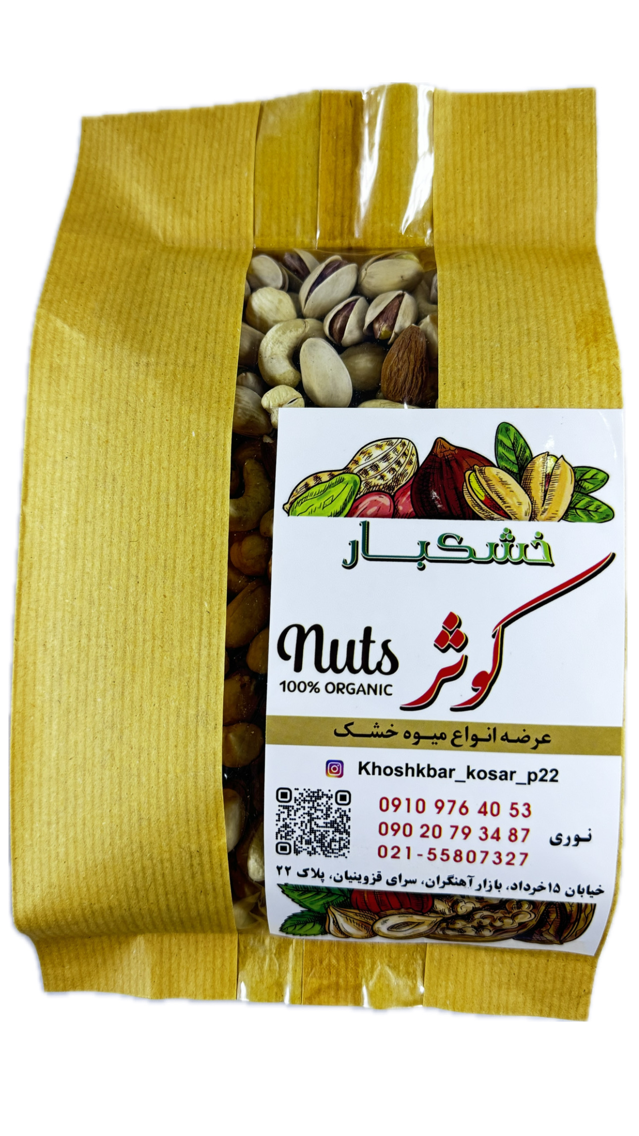 آجیل چهار مغز خام (ترکیبی از بادام، پسته، فندق و گاهی بادام هندی) سرشار از پروتئین، فیبر، چربیهای سالم، ویتامینها (به خصوص E) و مواد معدنی مانند منیزیم و روی است و فواید آن شامل موارد زیر میشود: تقویت حافظه و عملکرد مغز، کاهش کلسترول بد خون و محافظت از سلامت قلب، تامین انرژی پایدار و کمک به کنترل وزن، تقویت سیستم ایمنی و پیشگیری از بیماریهای مزمن.