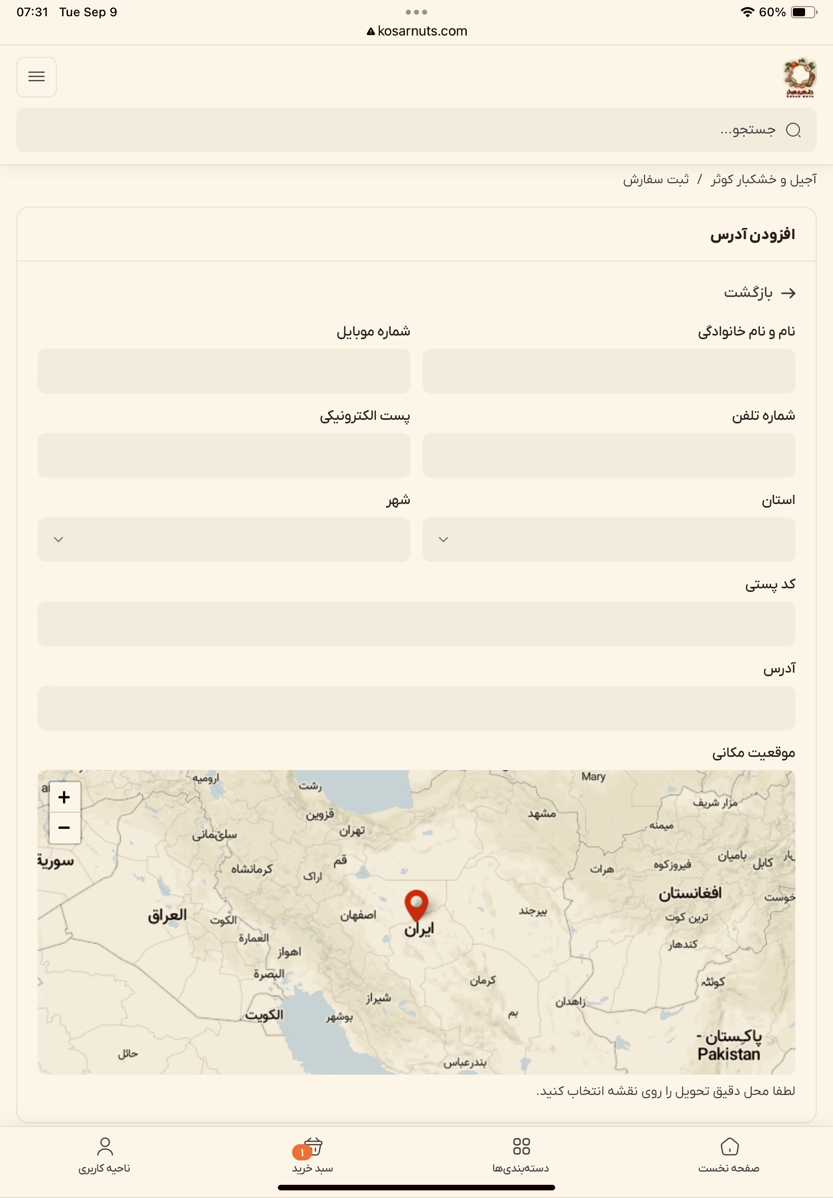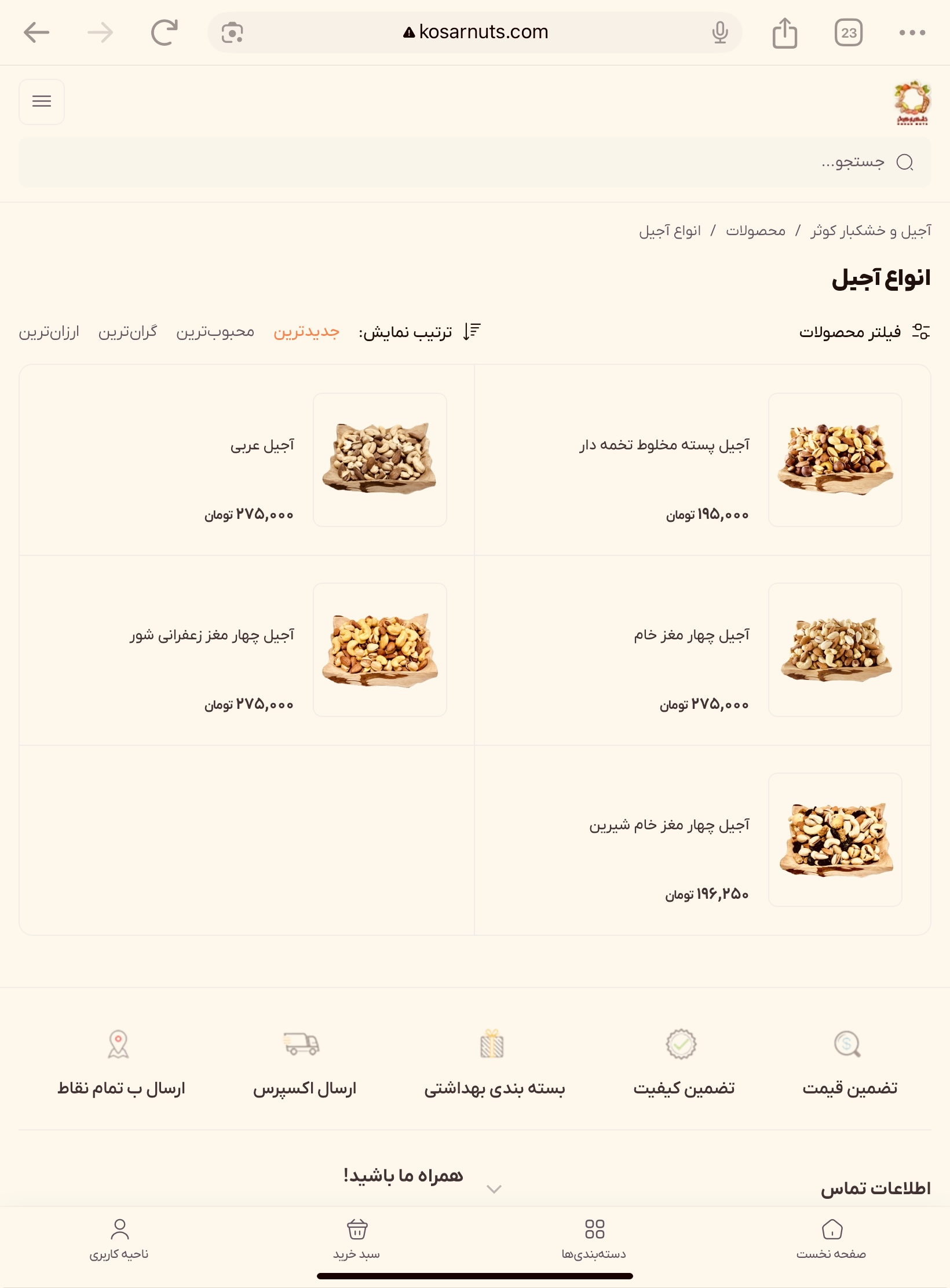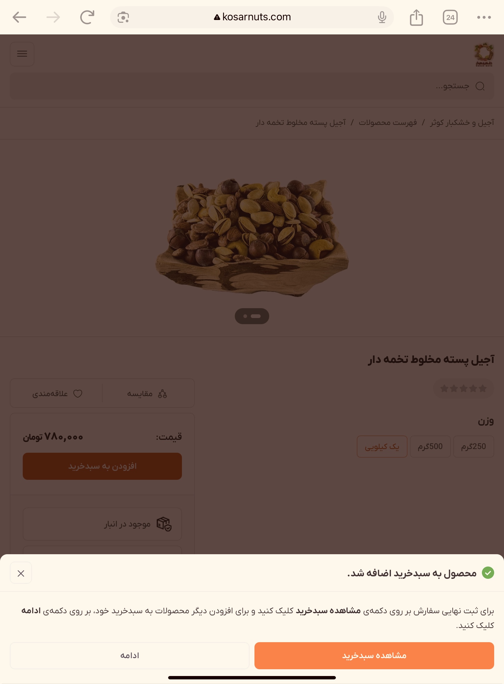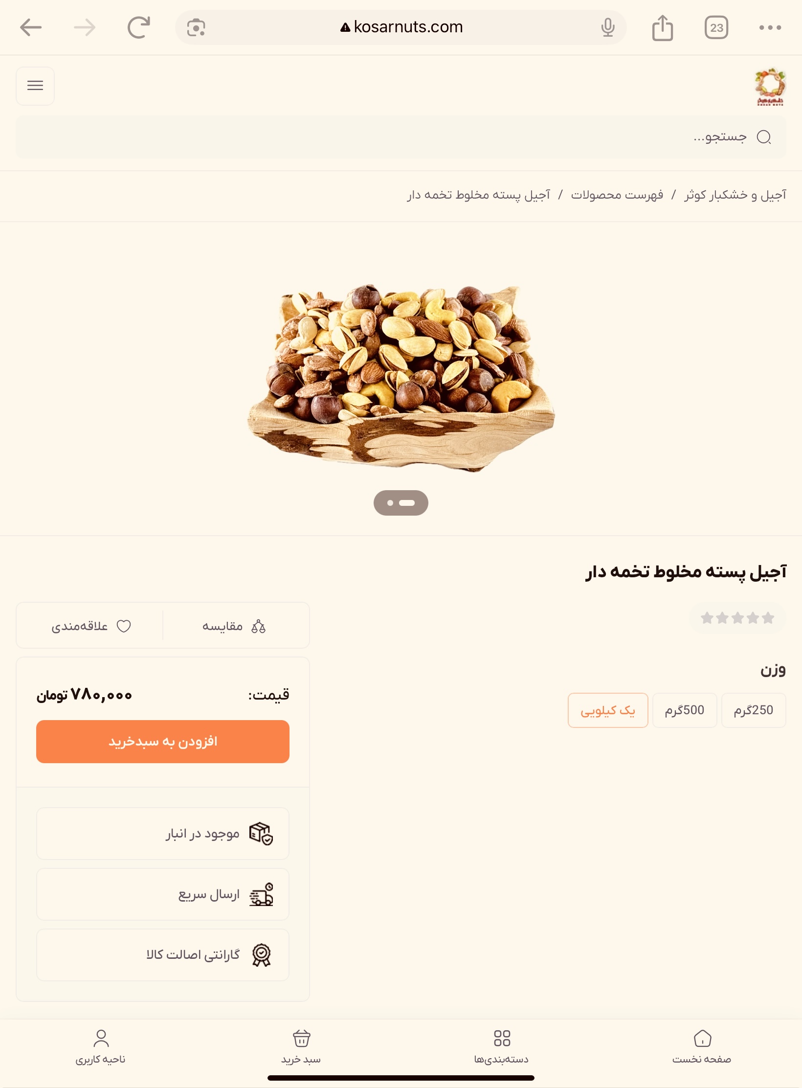 ۲. پس از انتخاب دسته محصول، بر روی محصول مورد نظر کلیک کرده و سپس وزن مورد نظر را انتخاب نموده و دکمه "افزودن به سبد خرید" را فشار دهید.